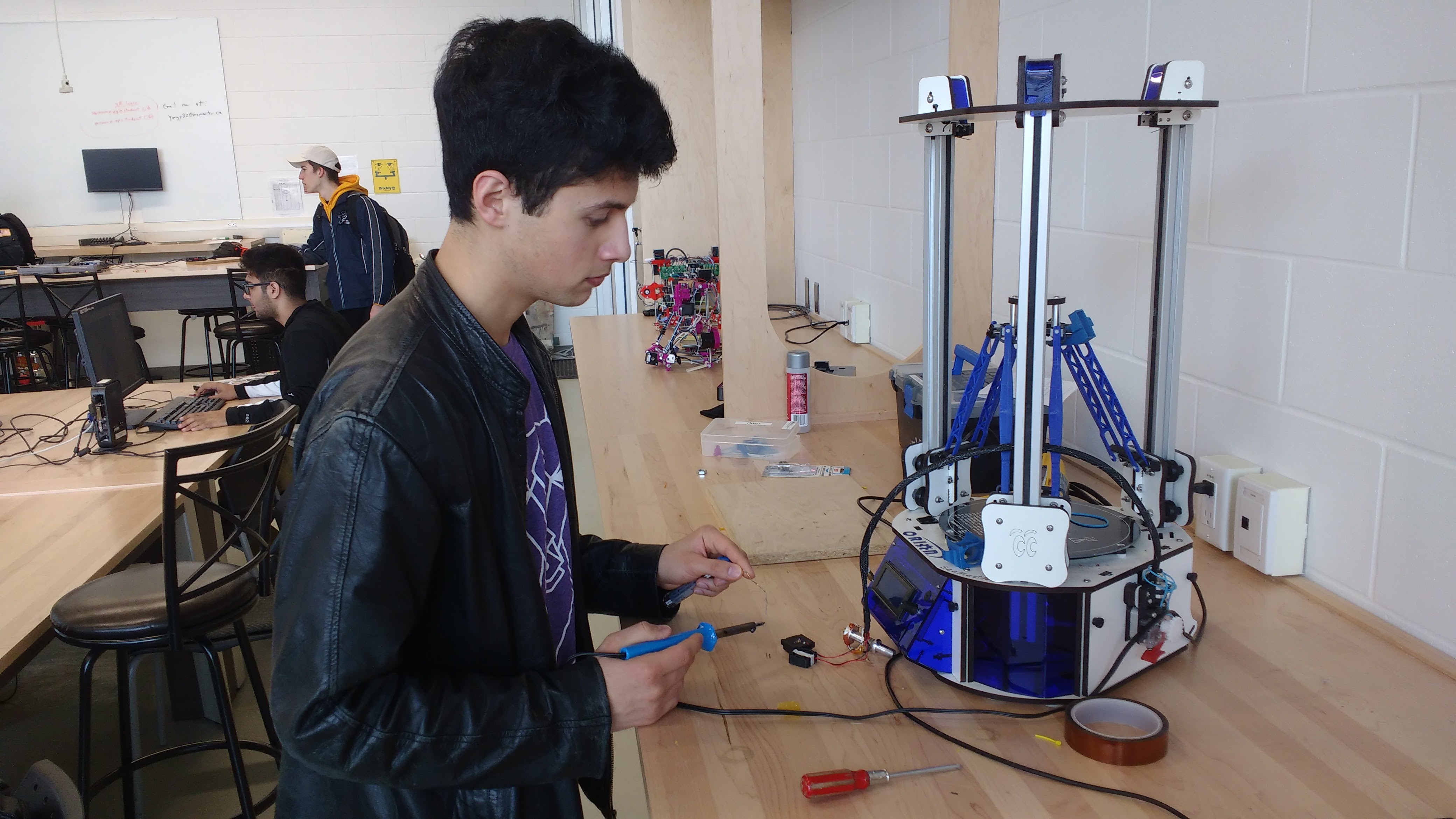I am a teaching assistant for the McMaster ENG 1C03 Course(3D Modelling and 3D printing). It is my responsibility to help students with the 3D printing services offered at the McMaster EPIC Lab. I perform regular maintenance on the lab fleet of 3D printers(CubePro Trio and Orion Delta). Additionally, I teach students to use CAD software, such as Autodesk Inventor.